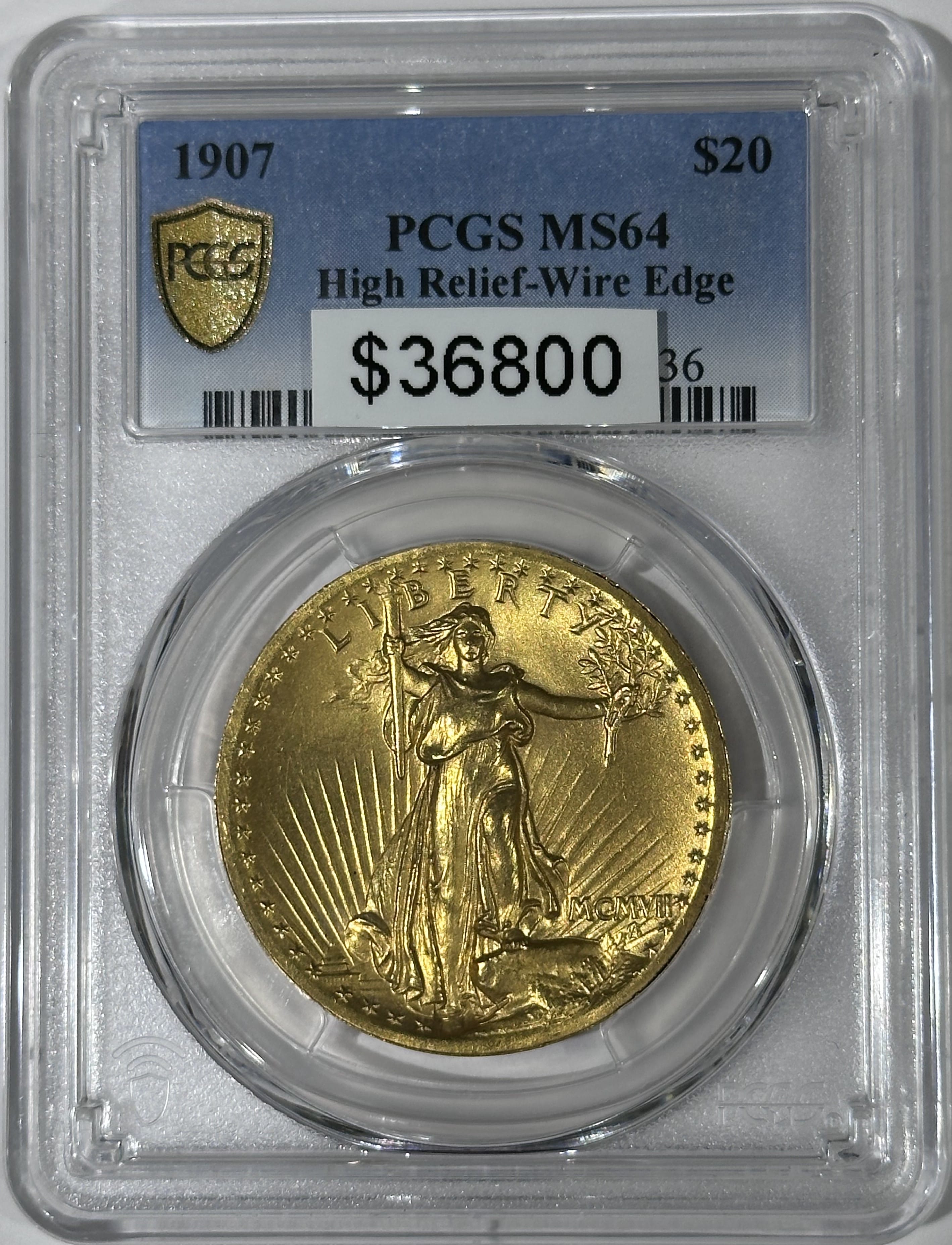 PCGS MS63 CAC 1907 $20 St. High Relief $33000