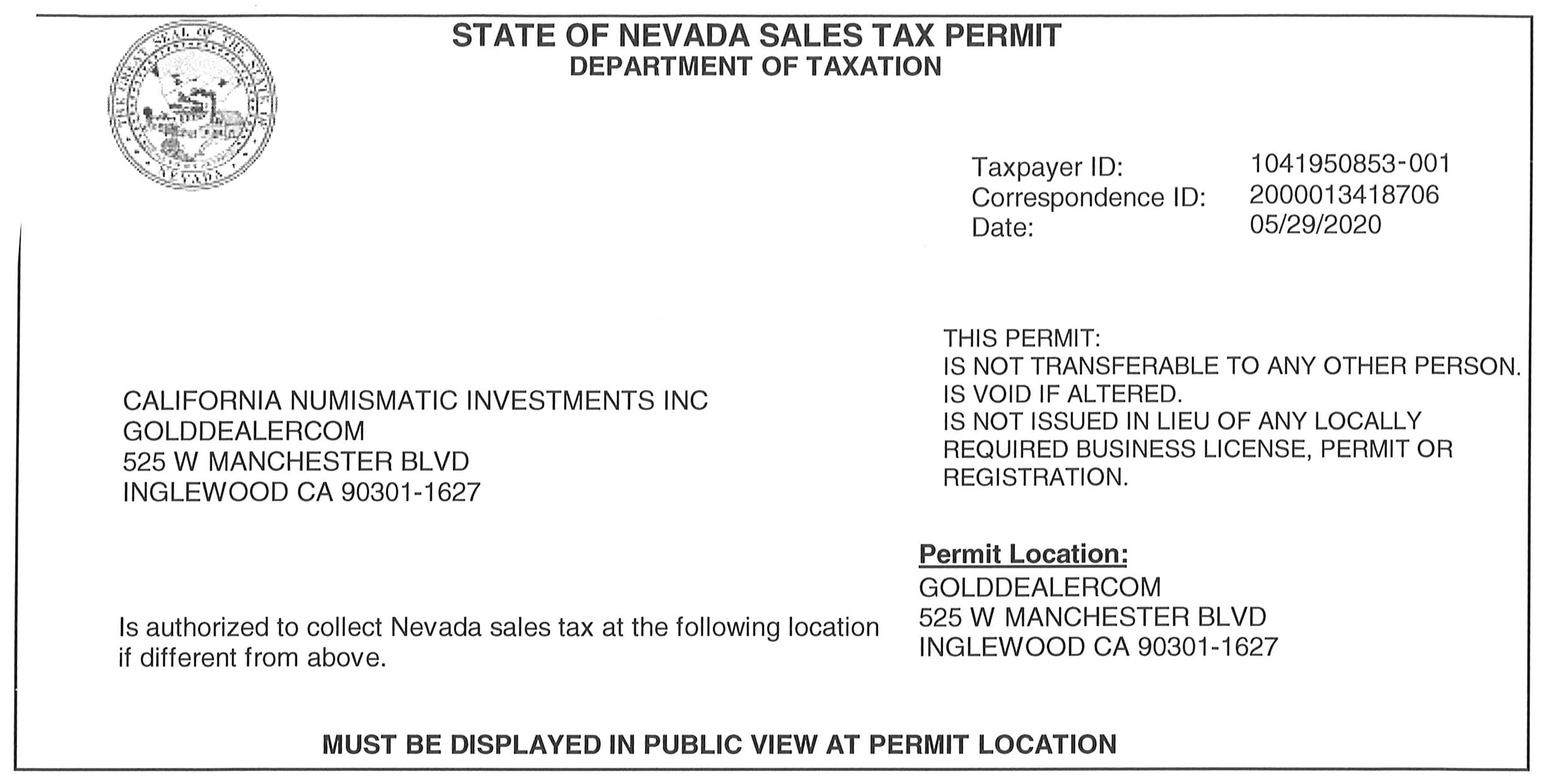 GoldDealer’s tax license number in Nevada is 1041950853-001 and the registration can be viewed here.