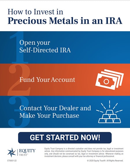 If you’d like to get started, click on the graphic below to get to Equity Trust’s application (Their 100% electronic account enrollment and funding journey for Precious Metal Self-Directed IRAs takes just 10-15 minutes to complete) or you can call their Precious Metals Self Directed IRA team at (888) 744-0096. You can also print out a paper application to send if you prefer.
