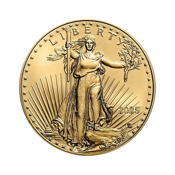 Other reasons for popularity are: (1) The American Gold Eagle appeals to a worldwide audience because of its low premium. It is also a popular choice for Individual Retirement Accounts. (2) The American Gold Eagle 1/2 oz 2025 is easy to buy and sell because dealers worldwide post daily buy and sell prices. (3) The American Gold Eagle 1/2 oz 2025 contains one half ounce of the gold so valuation is simple. (4) The US Mint places 40 of these gold coins in a plastic tube which allows for easy storage. (5) This coin also has a following in the “survival” community. Those who want a real US gold legal tender coin of smaller denomination for daily needs in case of emergency.