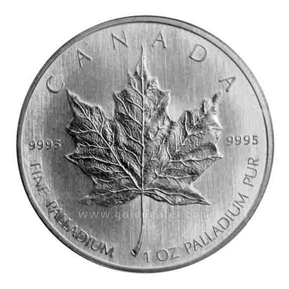 The reverse features a stylized maple leaf; the Canadian national symbol. It also includes the word palladium with weight and purity. The Canadian Palladium Maple Leaf 1 oz trades for a small premium above its palladium weight and the legal tender value while symbolic is a big plus because it provides the guarantee of a sovereign nation.