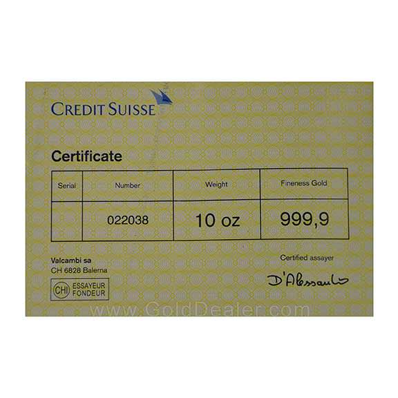 Credit Suisse Gold Bar 10 oz